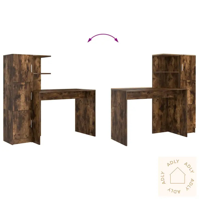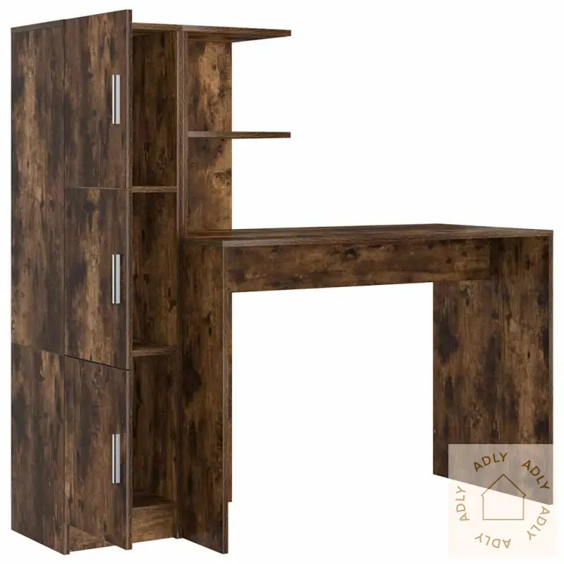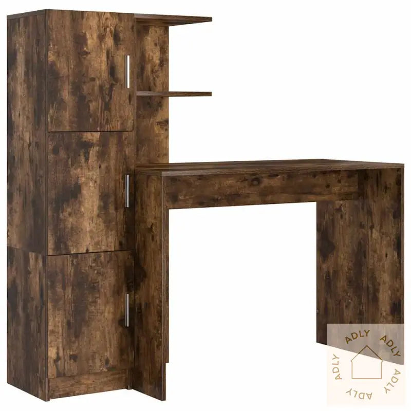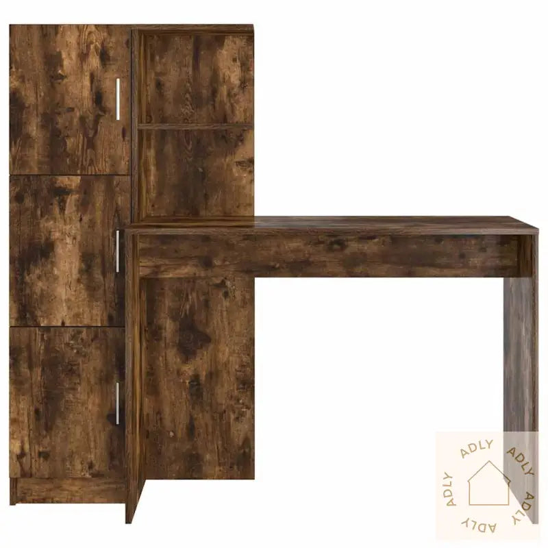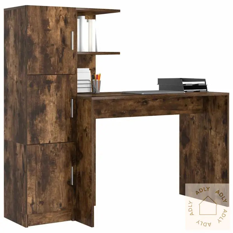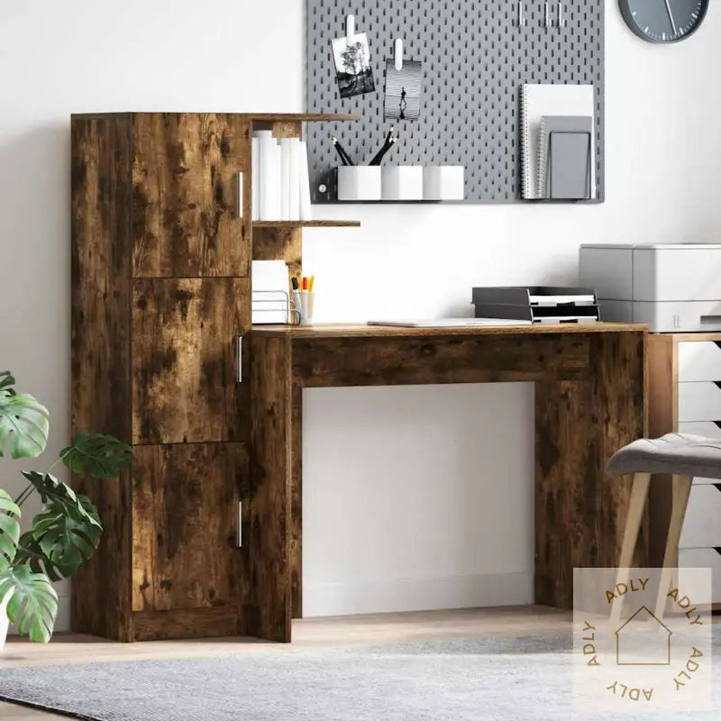 Dette skrivebordet kombinerer moderne stil med praktisk funksjonalitet, og gir deg rikelig plass til å skrive, studere eller jobbe på datamaskinen. Med sitt trendy design i røkt eikefinish laget av solid konstruert tre, passer det perfekt inn sammen med andre møbler til hjemmet, enten du vil friske opp hjemmekontoret eller ønsker en smart arbeidsplass i stua. Skrivebordet er både elegant og slitesterkt, og gir deg en løsning som holder seg fin over tid uten mye vedlikehold.