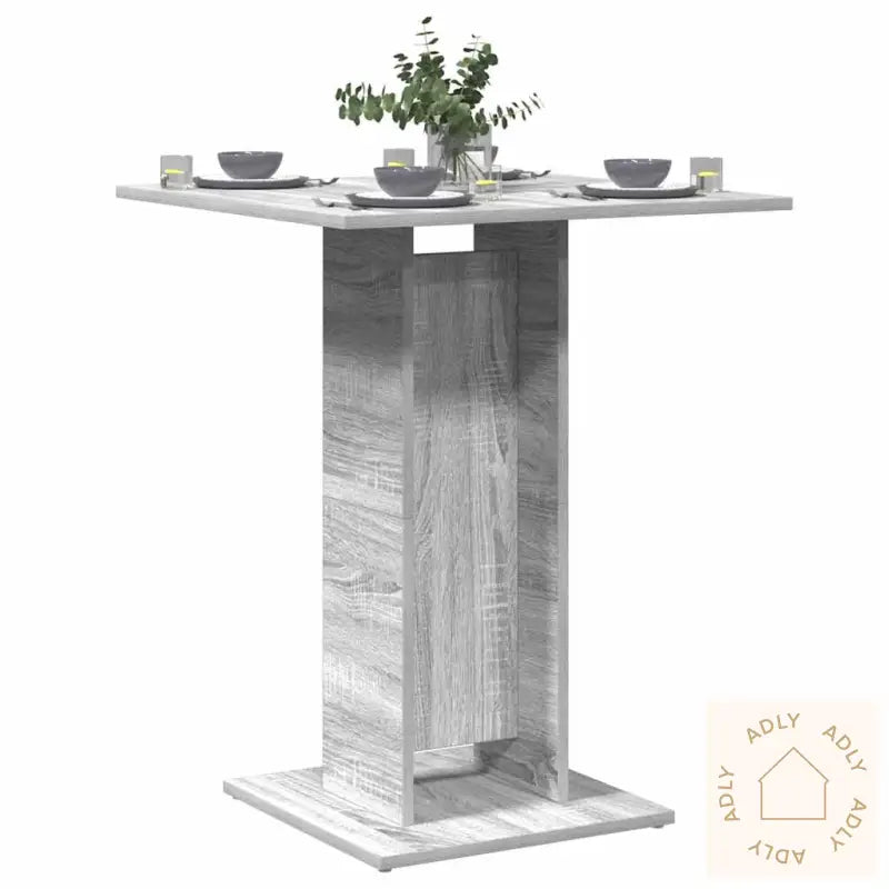 Premium materiale: Det konstruerte treverket er av høy kvalitet, gir bordet en jevn og slitesterk overflate, og er kjent for sin styrke, stabilitet og motstandsdyktighet mot fukt. Dette gjør bordet til et smart valg for både møbler til hjemmet og utendørsmøbler.Allsidig stil: Designet gjør at bordet passer flott inn i mange ulike miljøer og situasjoner – alt fra bankettsaler, konferansesentre og hoteller, til barer, klubber og pauserom. Den allsidige stilen sørger for at bordet lett kan kombineres med resten av dine møbler, både inne og ute.Enkelt å rengjøre: Det praktiske bistrobordet er svært enkelt å holde rent – det holder ofte med en fuktig klut for å fjerne flekker og støv, noe som gjør det perfekt i en travel hverdag der du fortsatt vil ha stilfulle og rene møbler uten mye vedlikehold.Farge: grå eikMateriale: konstruert treMål: 60 x 60 x 75 cm (L x B x H)Montering kreves: ja