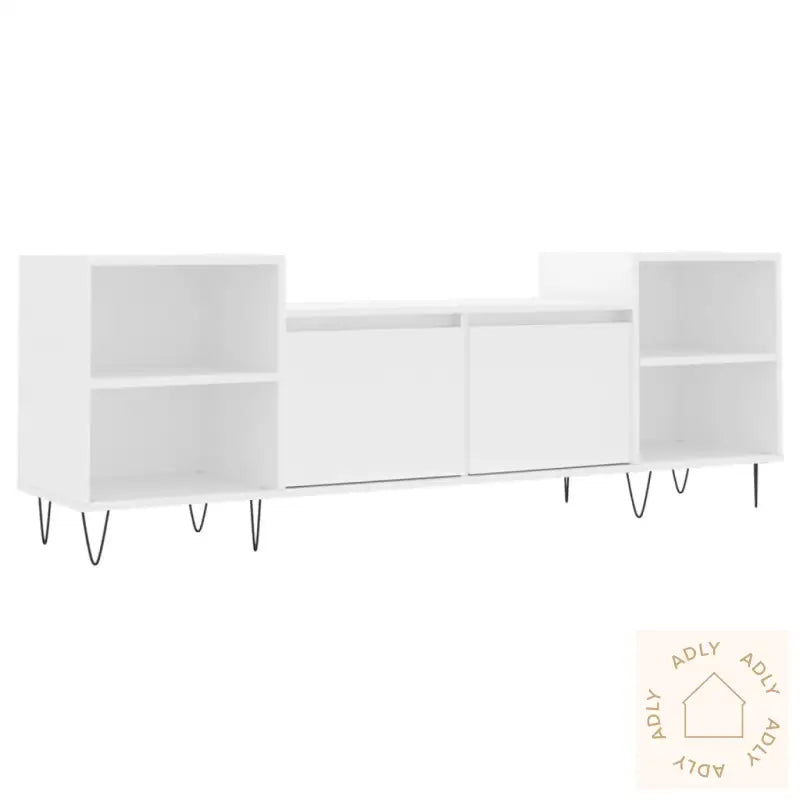 Solid materiale: TV-benken er laget av konstruert tre med en glatt og slitesterk overflate. Dette gir lang levetid og sørger for god styrke, stabilitet og motstand mot fukt, noe som gjør den ekstra anvendelig i ulike rom sammen med andre møbler eller bokhyller og stående hyller.Rikelig med lagringsplass: Med 6 rom får du praktiske lagringsmuligheter for alt fra blader og fjernkontroller til DVD-er og småting. Perfekt for å holde ting organisert og skape orden i stua eller andre oppholdsrom.Robust bordplate: Den solide overflaten på toppen av benken gir deg plass til å vise frem dekor, blomster, fotorammer eller andre pyntegjenstander – og tåler daglig bruk uten problemer.Praktiske dører: Du kan enkelt holde nødvendige ting støvfrie og skjult for øyet ved å oppbevare dem bak de lukkbare dørene på mediaskapet.Advarsel: