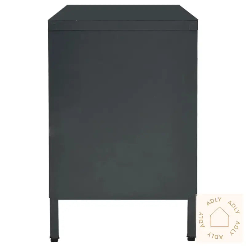 Farge: antrasittMaterialer: antrasitt pulverlakkert stål, herdet glassMål: 105 x 35 x 52 cm (L x B x H)Med 2 glassdørerMed justerbar hylle og føtterMontering kreves: ja
