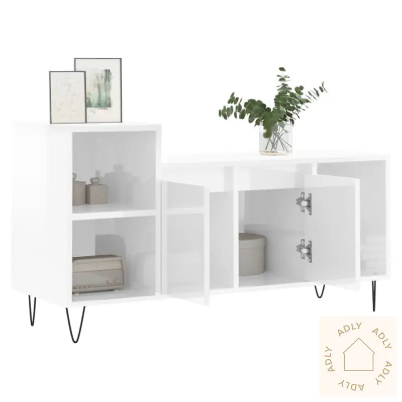 Solid materiale: Det konstruerte treverket gir en overlegen kvalitet med en glatt finish. Dette materialet er både slitesterkt, stabilt, og motstandsdyktig mot fuktighet – ideelt for møbler som skal tåle litt av hvert i hverdagen.Rikelig med lagringsplass: TV-benken har hele 5 rom, så du får god plass til å organisere alt fra magasiner, DVD-er, til mediautstyr og småting. På den måten holder rommet seg ryddig og organisert, samtidig som alt er lett tilgjengelig.Robust bordplate: Den solide bordplaten på TV-enheten gir en stødig overflate der du kan vise frem dekorative elementer, fotorammer eller grønne planter som skaper ekstra liv i rommet – noe som passer fint inn blant andre moderne møbler.Praktiske dører: Dørene holder alt av nødvendige ting skjult og beskyttet mot støv, slik at rommet ser ryddig ut selv om du har mye oppbevart.Advarsel: