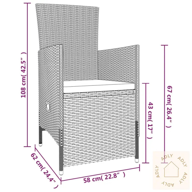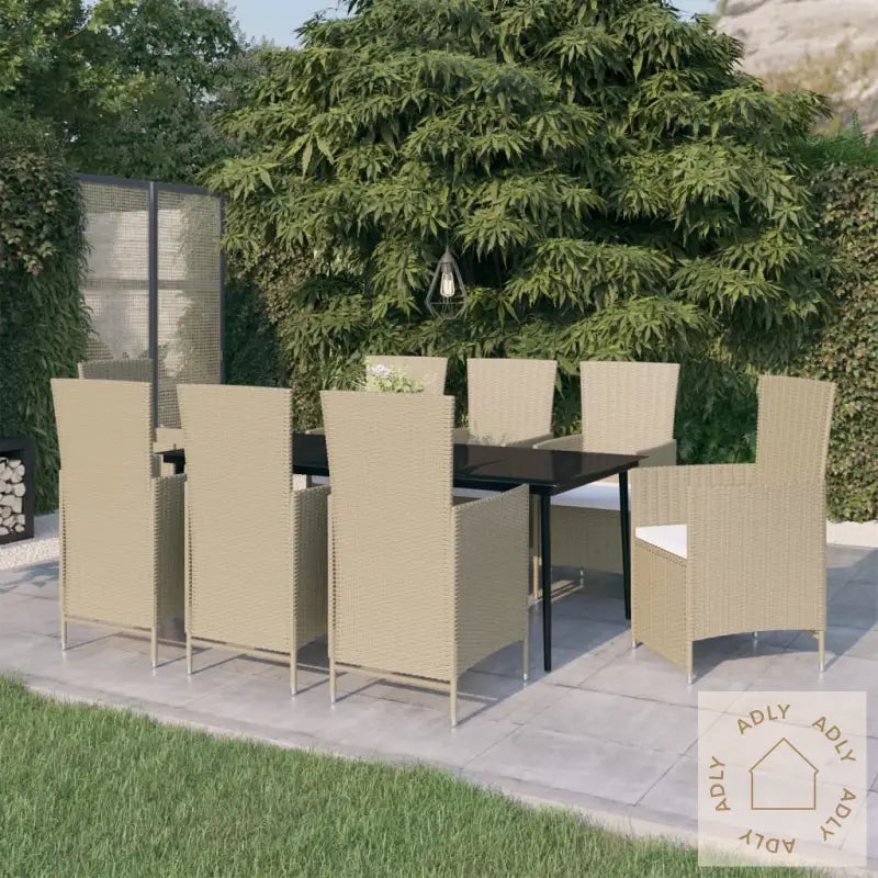 Farger: beige og svartFarge pute: kremhvitMaterialer: PE-rotting, pulverlakkert stål, glassMateriale putetrekk: 100 % polyesterMål bord: 200 x 100 x 74 cm (L x B x H)Mål stol (ikke tilbakelent): 58 x 62 x 108 cm (B x D x H)Mål (tilbakelent): 58 x 90/126 x 91 cm (B x D x H)Tykkelse pute: 4/5 cmBredde sete: 47/42-47 cmDybde sete: 47 cmHøyde sete fra bakken: 43 cmHøyde armlene fra bakken: 67 cmMontering kreves: jaLeveransen inneholder:1 x bord6 x stoler (justerbar rygg)2 x stoler (justerbar rygg- og fotstøtte)8 x seteputer