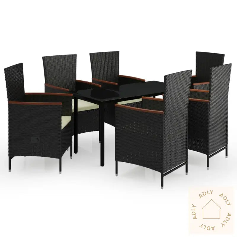 Seteputene er tykt polstret for god sittekomfort, og de avtagbare polyestertrekkene kan tas av og vaskes ved behov – praktisk og lite vedlikehold. Bordet har en glatt glassplate som er enkel å tørke av, og gir et elegant uttrykk samtidig som det er praktisk for servering av mat, drikke og dekorasjoner. Mål stol og bord er nøye tilpasset for å sikre god plass og komfort for alle rundt bordet.