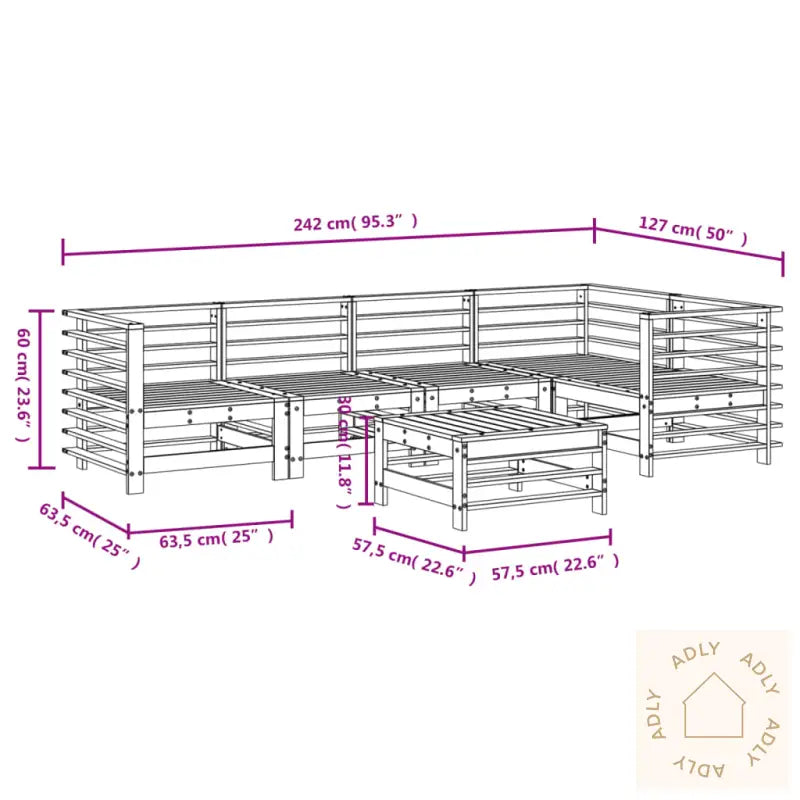 For å holde møblene godt ivaretatt over tid anbefales det å bruke et vanntett trekk når de ikke er i bruk – enkelt vedlikehold som forlenger levetiden på dine hagemøbler.Putene som vises på bildene er ikke inkludert – dette gir deg mulighet til å velge akkurat de fargene og stoffene du liker best.Materiale: Trykkimpregnert furuMateriale lameller: KryssfinerMål hjørnesofa: 63,5 x 63,5 x 60 cm (B x D x H)Mål midtsofa: 57,5 x 63,5 x 60 cm (B x D x H)Mål hagefotskammel/salongbord: 57,5 x 57,5 x 30 cm (B x D x H)Maksimal lastekapasitet per sete: 110 kgMontering kreves: JaLeveransen inneholder:3 x hjørnesofaer2 x midtsofaer1 x hagefotskammel/sofabord