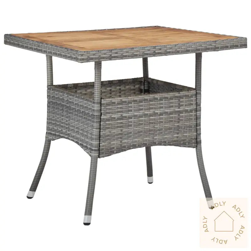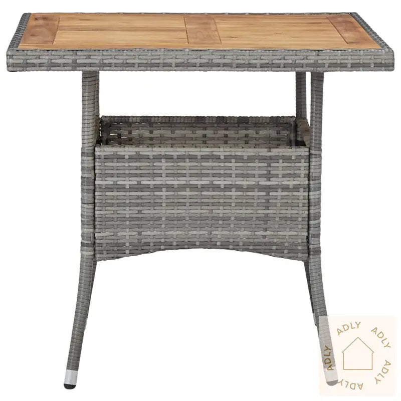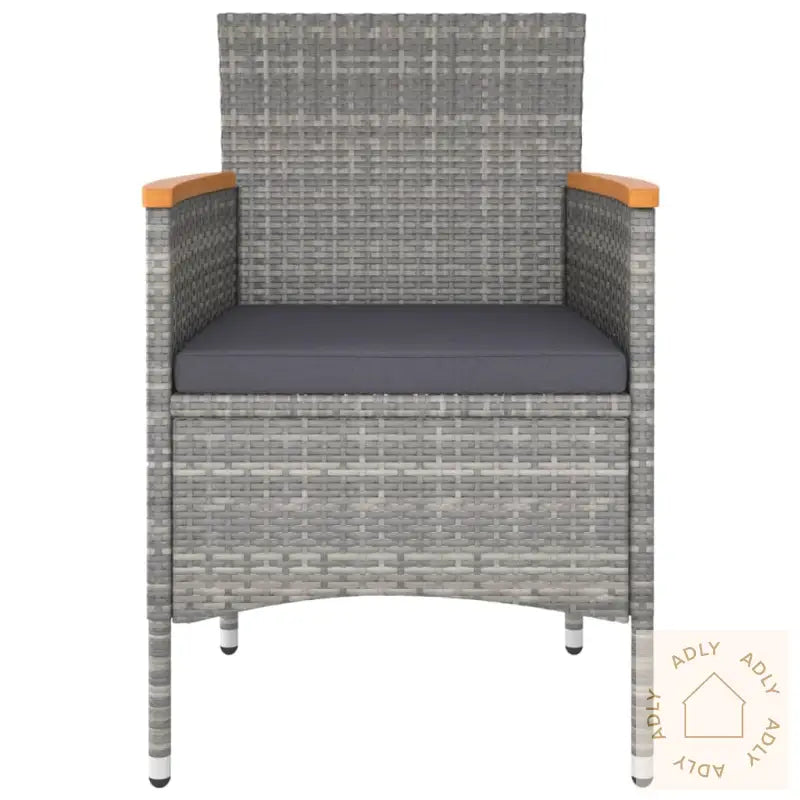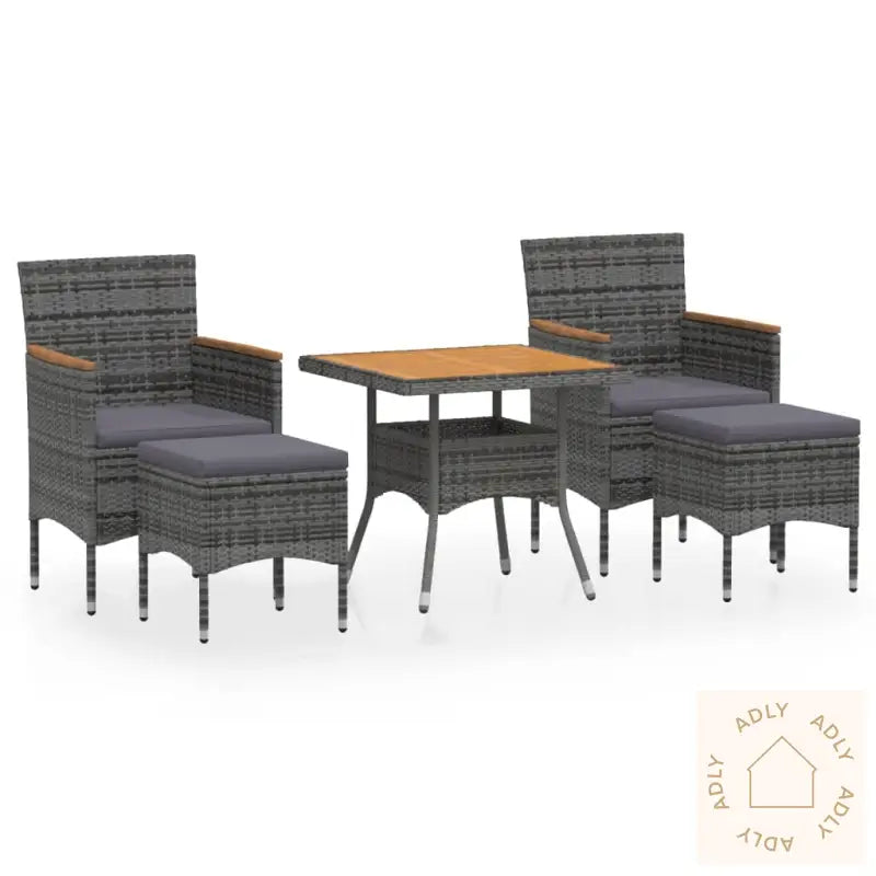 Farge: gråFarge pute: mørkegråMaterialer: polyrotting, pulverlakkert stål, stoff (100 % polyester)Materiale bordplate: heltre akasie med naturlig oljebehandlingMål bord: 80 x 80 x 75 cm (L x B x H)Mål stol: 53 x 58 x 84 cm (B x D x H)Mål fotskammel: 41,5 x 41,5 x 42,5 (B x D x H)Høyde sete fra bakken: 42 cmMål sete: 39/44,5 x 46 cm (B x D)Høyde fra bakken armlene: 62/65 cmArmlener dekorert med heltre akasieTykkelse setepute: 4 cmMontering kreves: jaLeveransen inneholder:1 x bord2 x stoler2 x fotskamler4 x seteputer