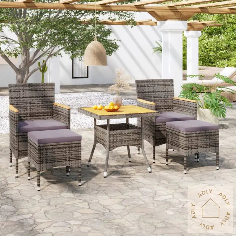 Denne stilige hagespisegruppen gir deg en avslappende og hyggelig stund sammen med familie og venner, enten det er frokost i sola eller et langt måltid på varme sommerkvelder.