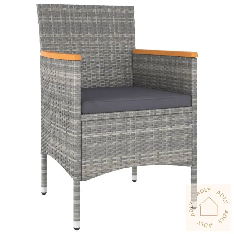 Med en solid ramme av pulverlakkert stål og et robust trekk av værbestandig PE-rotting med UV-beskyttelse, får du utendørsmøbler som holder seg pene lenge, selv i norsk klima. Den lette konstruksjonen gjør det enkelt å flytte bord og stoler rundt på terrassen eller i hagen når du vil endre på plasseringen. Stolene har buet rygg og armlener som gir deg god støtte og komfort uansett hvor lenge dere blir sittende. Putene er tykke og myke for ekstra sittekomfort, og de mørkegrå trekkene kan enkelt tas av med glidelås og vaskes ved behov – praktisk for alle som bruker hagemøbler mye.