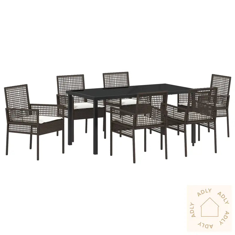 Dette hagemøbelsettet gir både stil og rikelig med plass, og er et supert valg for alle som liker å samle venner og familie til gode utendørs måltider. Med seks moderne stoler og et langt, rektangulært bord gir settet mye plass til både mat, drikke og hyggelig samvær. Den flotte fargekombinasjonen i brunt og krem gir et friskt løft til enhver terrasse eller hage, og gjør at møblene fremstår som innbydende og elegante – perfekt for deg som liker å ha det både lekkert og praktisk ute.
