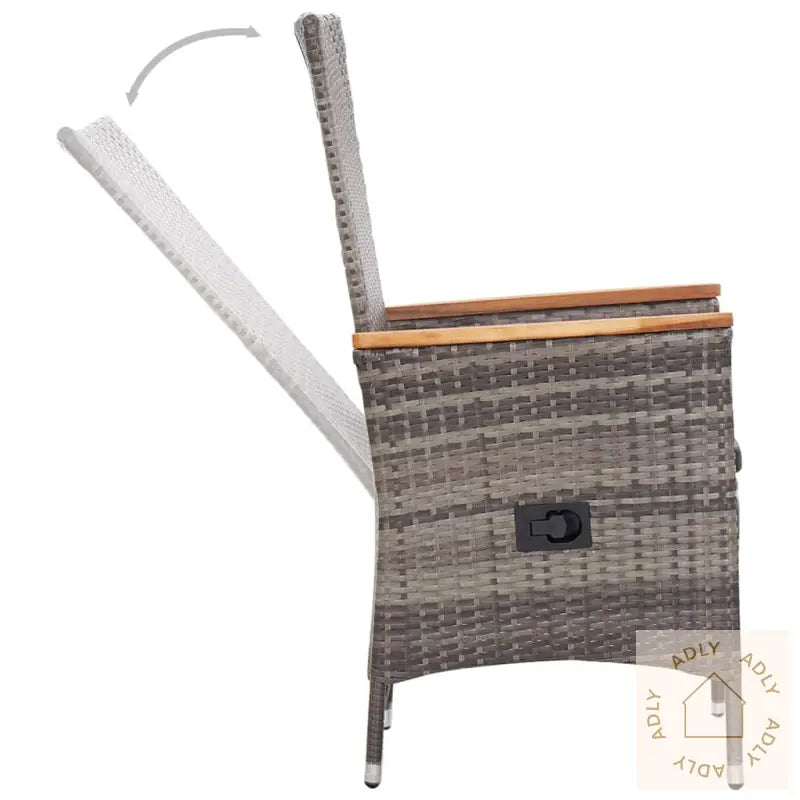De pulverlakkerte stålrammene gir både bordet og stolene utmerket stabilitet og holdbarhet, slik at de tåler daglig bruk i all slags vær. Stolene er laget med vannavstøtende PE-rotting, noe som gjør dem ekstra slitesterke og lette å holde rene. For ekstra komfort har stolene justerbar ryggstøtte—du bare trykker på knappen på siden for å lene deg bakover og slappe av. Den lette konstruksjonen gjør det enkelt å flytte både bord og stoler rundt i hagen eller på terrassen etter behov.