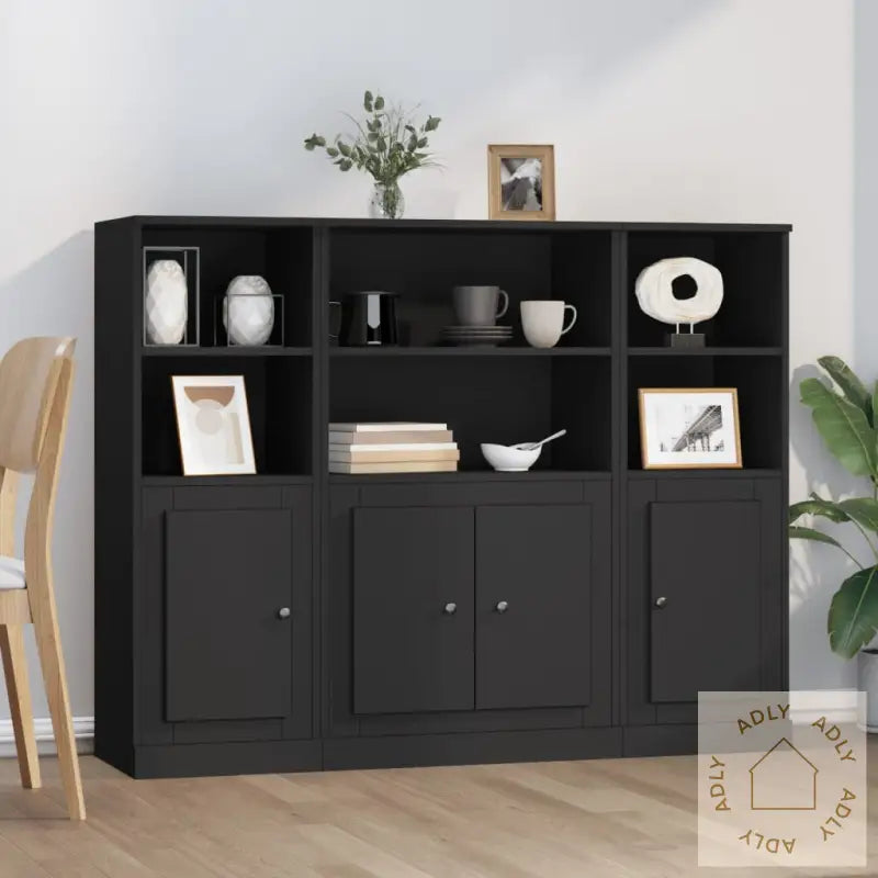 For å forhindre at møbelet velter bør du alltid bruke den medfølgende festeanordningen når møbelet monteres.Farge: svartMateriale: konstruert treSamlet mål: 132 x 35,5 x 103,5 cm (L x B x H)Montering kreves: jaLeveransen inneholder:3 x highboardLegal Documents: