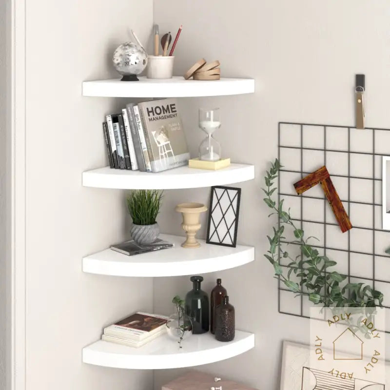Dette settet med 4 stilige hjørnehyller er perfekt for å vise frem favorittbøkene dine, samleobjekter, bilder eller premier på en moderne måte. Hver hylle er laget av solid MDF i bikakestruktur kombinert med sterkt metall, som gir både stabilitet og lang holdbarhet – perfekt som møbler til hjemmet ditt.