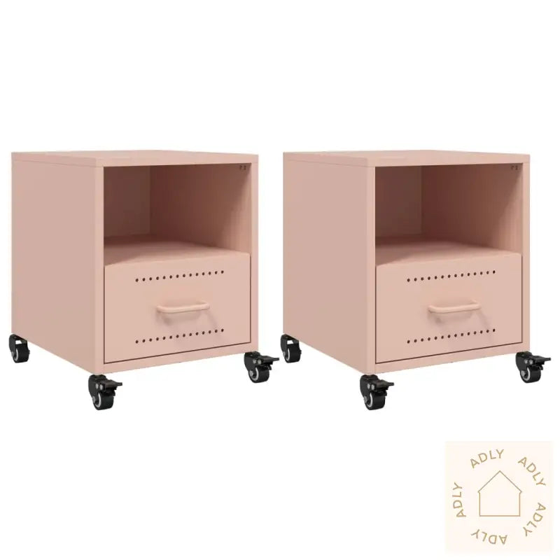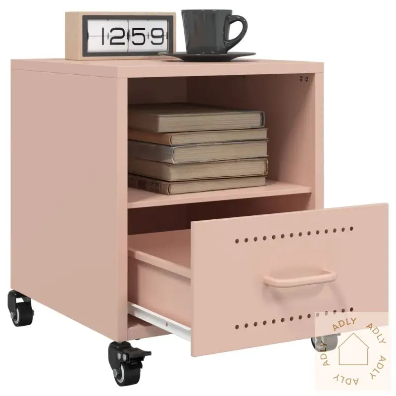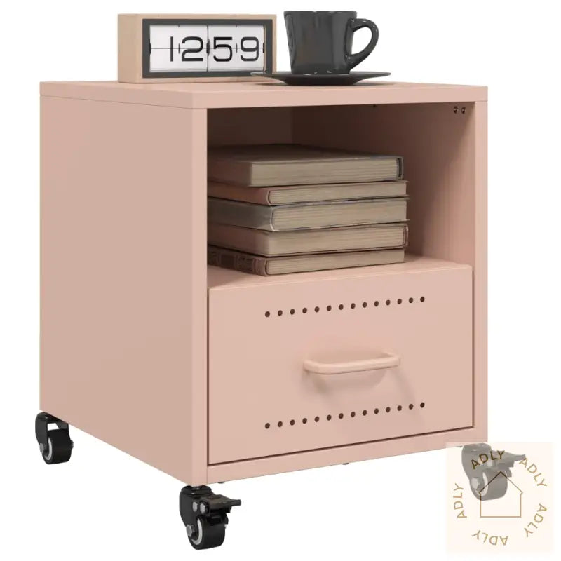 Praktisk håndtak: Skapet har et smart håndtak for enkel åpning og lukking, samtidig som det gir et stilig preg til designet.Farge: rosaMateriale: kaldvalset stålMål: 36 x 39 x 43,5 cm (L x B x H)Med 1 skuffMed 1 romMontering kreves: jaLeveransen inneholder:2 x nattbord