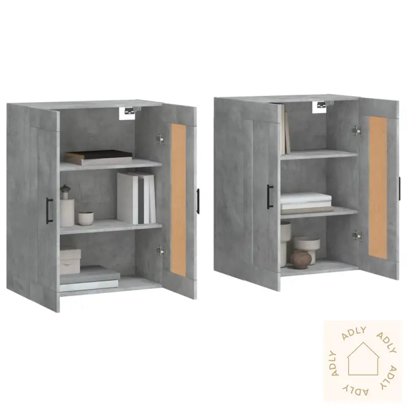 Skruer og plugger til innvendig vegg følger ikke med. Det anbefales at du velger riktig festemateriell ut fra dine vegger – spør gjerne en fagperson om råd om du er usikker. Husk å lese og følge hele instruksjonsveiledningen for sikker montering.Farge: BetonggråMaterialer: Konstruert tre, sinklegeringMål (hver): 69,5 x 34 x 90 cm (B x D x H)Montering kreves: JaLeveransen inneholder:2 x vegghengte skap