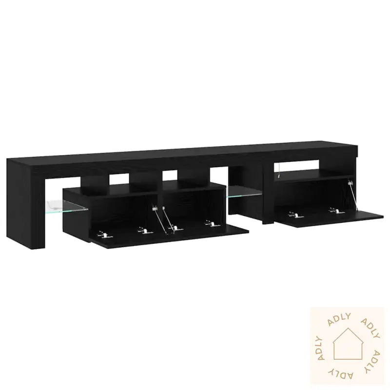 Gi stua di et skikkelig løft med de stilige vidaXL TV-skapene! Disse møblene kombinerer moderne design og praktisk funksjonalitet og passer perfekt inn blant andre møbler til hjemmet. Skapsettet gir deg kule RGB LED-lys for ekstra stemning på filmkvelden, en elegant svart eikefinish som gjør seg i alle moderne hjem, og romslig oppbevaring med to store skuffer. Her får du både plass til elektronikk, bokhyller og stående hyller, og alt annet du vil ha lett tilgjengelig i stua.