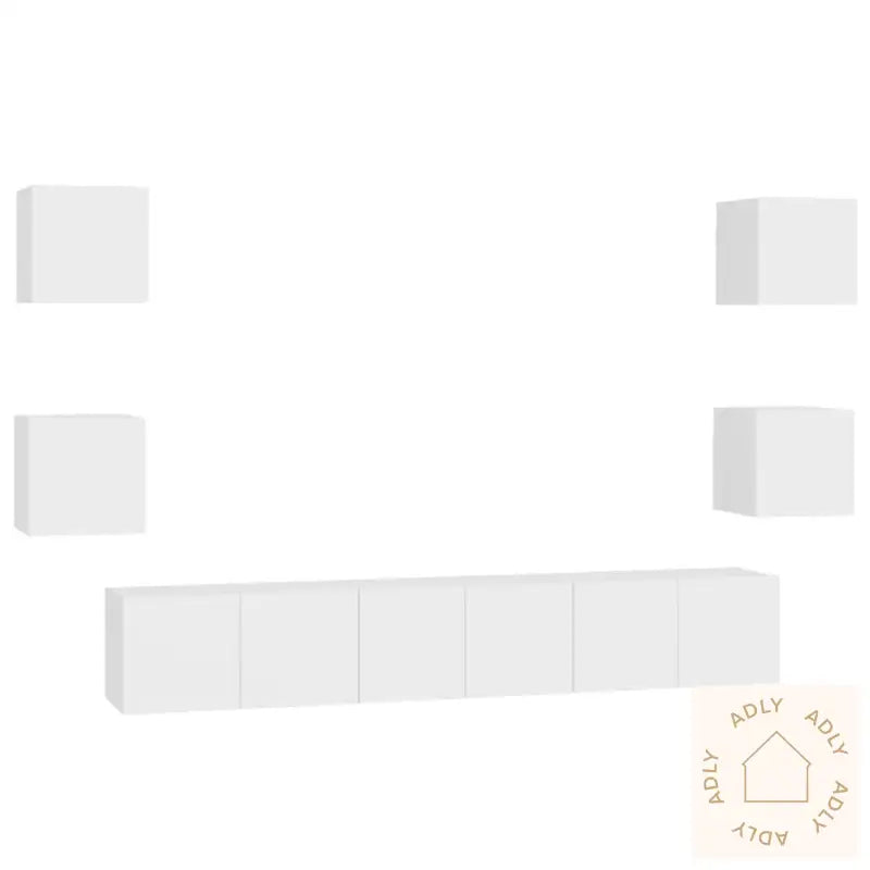 Farge: hvitMateriale: konstruert treMål (stort): 60 x 30 x 30 cm (B x D x H)Mål (S): 30,5 x 30 x 30 cm (B x D x H)Montering kreves: jaLeveransen inneholder:3 x TV-benk (L)4 x TV-benk (S)