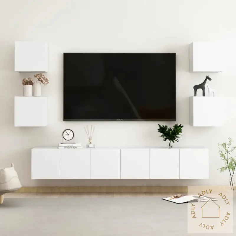 Dette solide TV-benksettet er designet for å være et fokuspunkt i stua, og kombinerer et moderne og praktisk design som passer perfekt sammen med andre møbler til hjemmet. Dette stilrene TV-stativet festes på veggen, noe som gir et tidløst og minimalistisk uttrykk. Den hvite finishen passer lett inn med ulike interiørstiler, fra klassisk til mer moderne hjem.