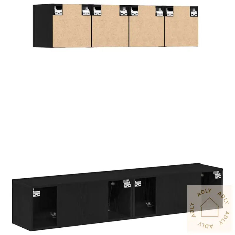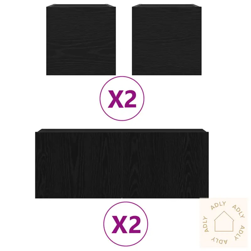 Forny stuen din enkelt med vidaXL 6 deler TV-skapsett i en elegant svart eikefinish. Dette veggmonterte møbelsettet blander stilrent uttrykk med praktisk funksjonalitet, og passer perfekt til deg som ønsker moderne møbler til hjemmet. Med sitt rene design gir dette TV-skapsettet deg rikelig med lagringsplass, slik at du kan presentere både underholdningsutstyr, dekor og for eksempel bokhyller og stående hyller på en ryddig måte.