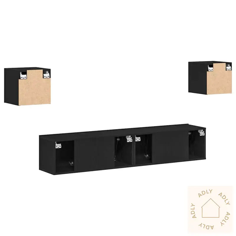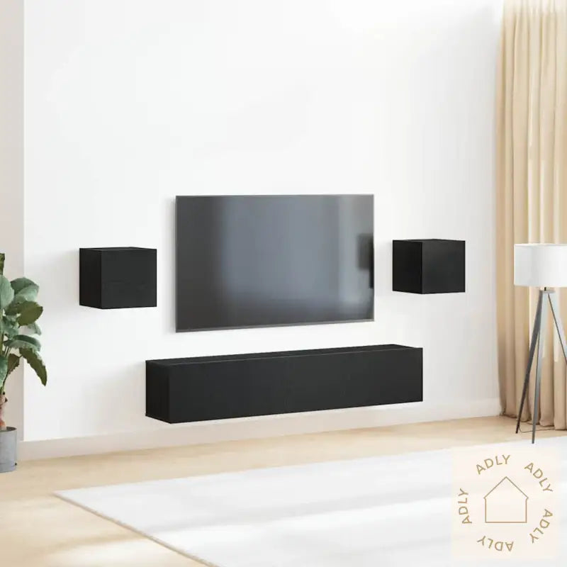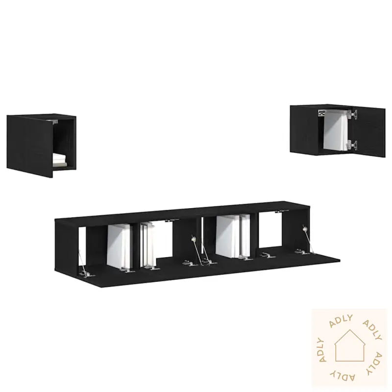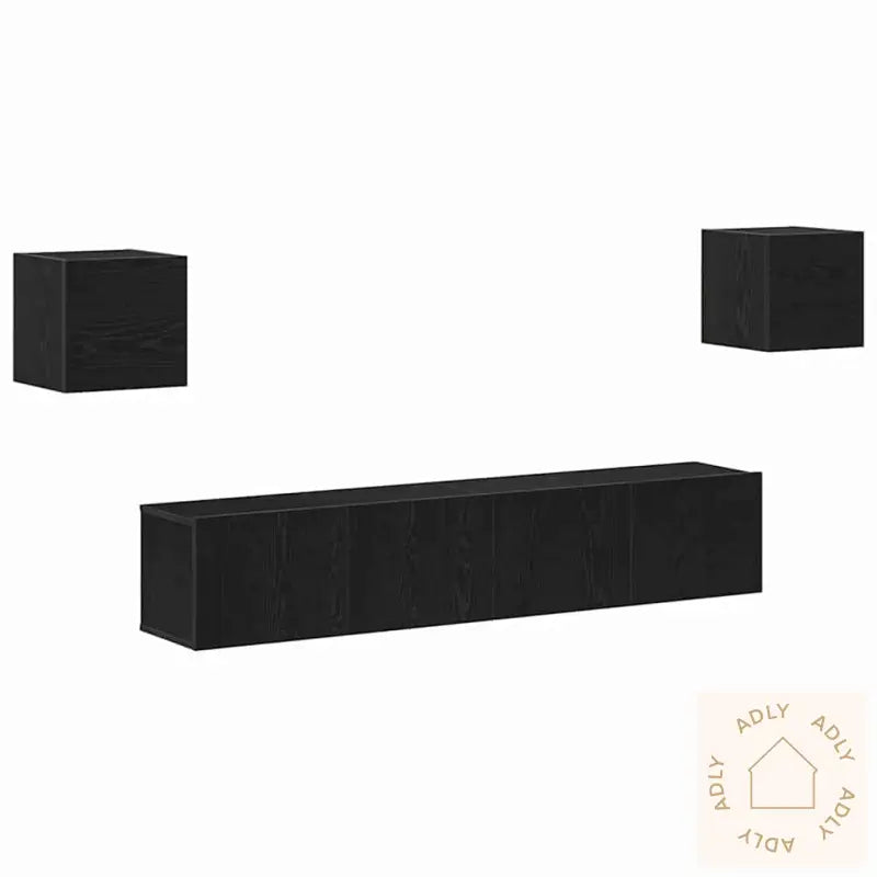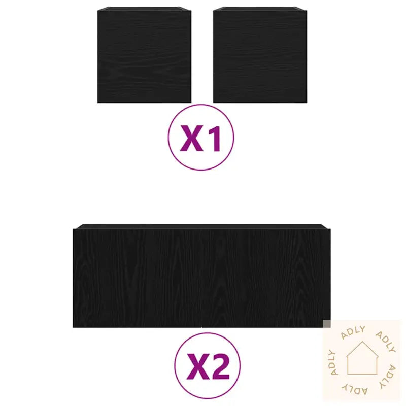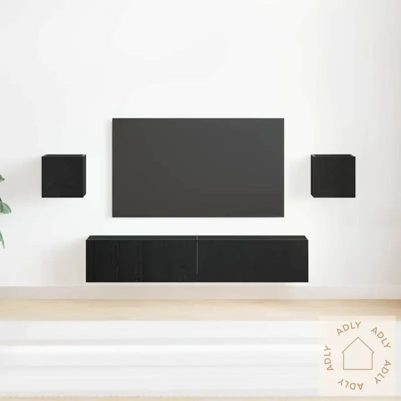 Oppgrader stuen din med vidaXL TV skap sett, nøye designet for å gi deg både moderne stil og funksjonell lagringsplass. Den stilige svarte eikefinishen gir et elegant uttrykk som matcher de fleste typer møbler til hjemmet, enten du foretrekker en klassisk eller minimalistisk innredning.