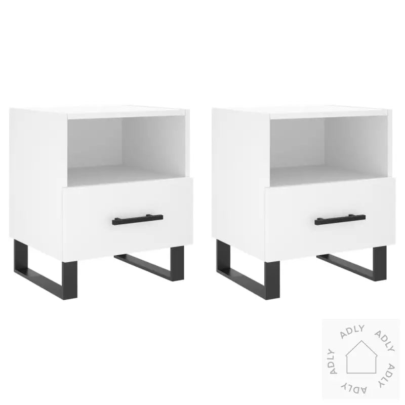 Slitesterkt materiale: Nattbordene er laget av konstruert treverk av høy kvalitet, kjent for sin glatte overflate og robuste struktur. Dette gjør dem motstandsdyktige mot fuktighet og slitasje, slik at du får møbler som holder seg fine lenge og tåler daglig bruk.Romslig lagringsplass: Nyt god oppbevaringsmuligheter med ett rom og en skuff, ideelt for å samle bøker, småting og multimediautstyr nær sengen. Den romslige lagringsplassen hjelper deg å skape orden og gir deg enkel tilgang til alt du trenger, når som helst.Visningsfunksjon: Øverste flaten på nattbordet er perfekt for favorittbilder, blomster eller dekorative detaljer – noe som gir et personlig preg i soverommet og lar deg enkelt fornye stilen når du vil.Metallføtter: De solide metallføttene tilfører både moderne stil og ekstra stabilitet, og sørger for at nattbordene står stødig uansett underlag.Farge: hvitMaterialer: konstruert tre, jernMål: 40 x 35 x 47,5 cm (B x D x H)Montering kreves: jaLeveransen inneholder:2 x nattbord