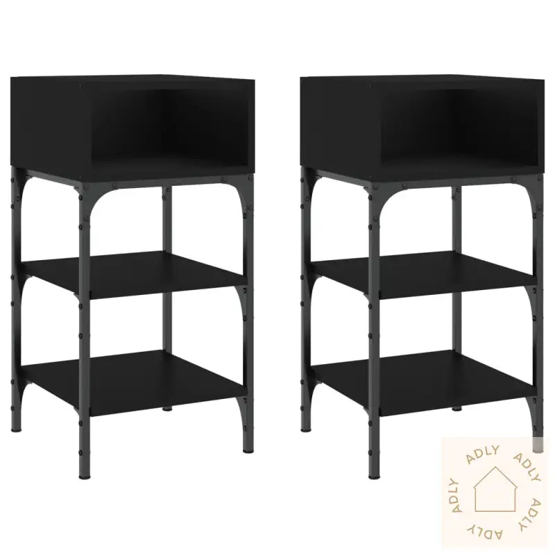 For å unngå at produktet velter, skal det alltid festes med vedlagte anordning.Farge: svartMaterialer: konstruert tre, jernMål: 35 x 34,5 x 70 cm (B x D x H)Montering kreves: jaLeveransen inneholder:2 x nattbordLegal Documents: