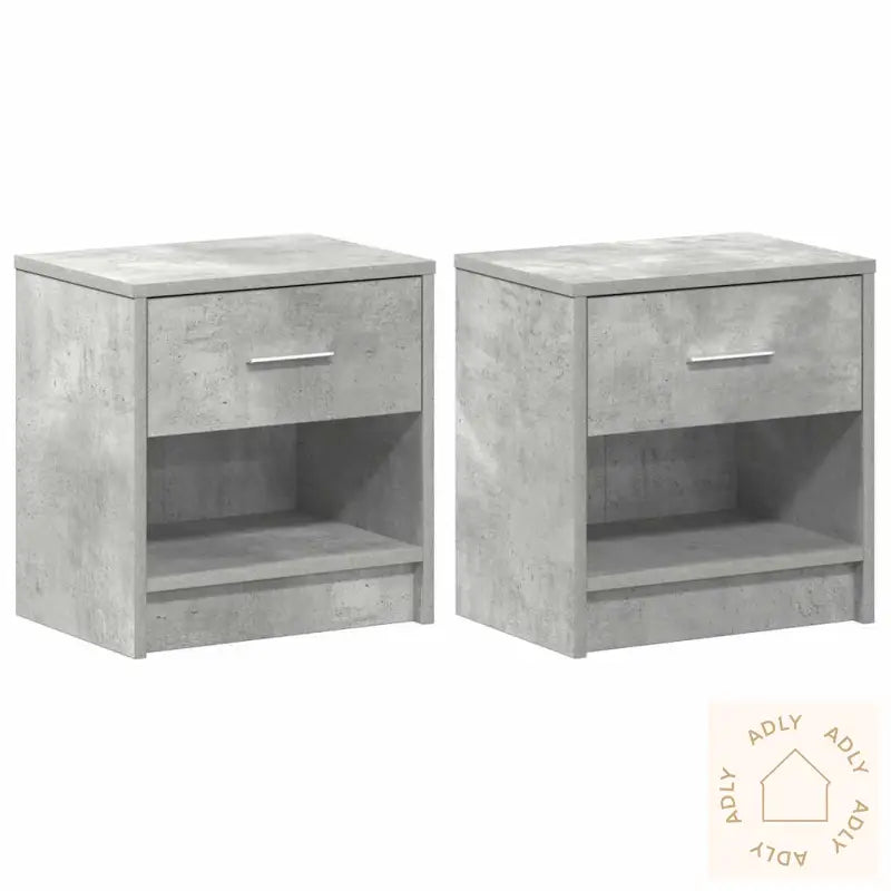 For å sikre nattbordet mot velt, bør produktet alltid festes til veggen med den medfølgende festeanordningen.Farge: betonggråMateriale: konstruert treSamlet mål (hver): 39 x 28 x 41 cm (B x D x H)Mål skuff: 35 x 23,5 x 15 cm (B x D x H)Antall skuffer: 1Total vektkapasitet (stk): 60 kgVektkapasitet per skuff: 5 kgMontering kreves: jaLeveransen inneholder:2 x nattbord