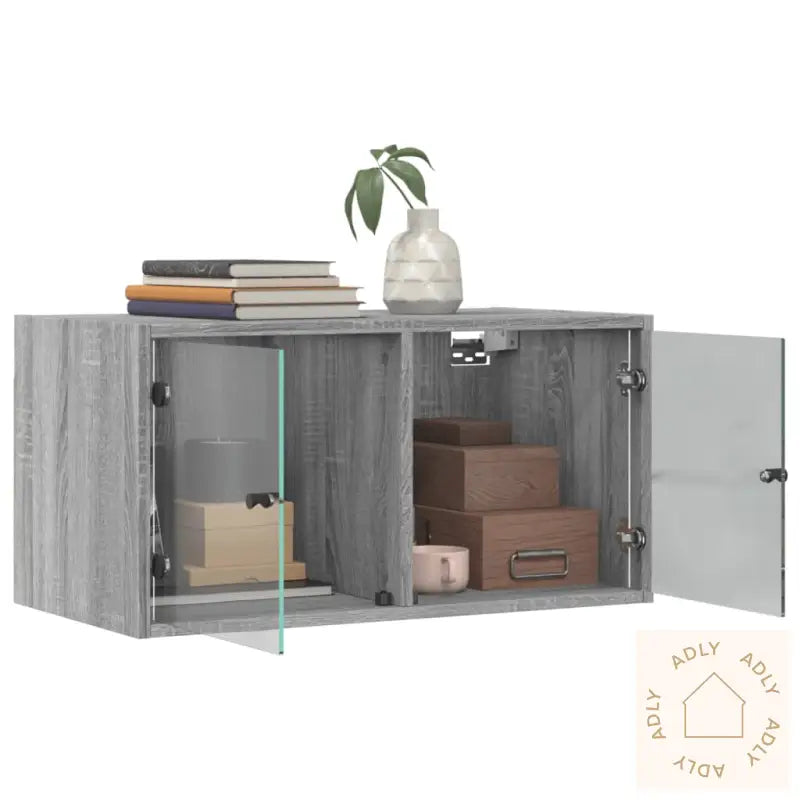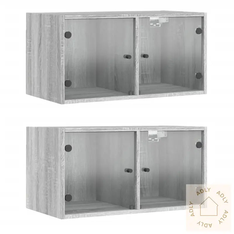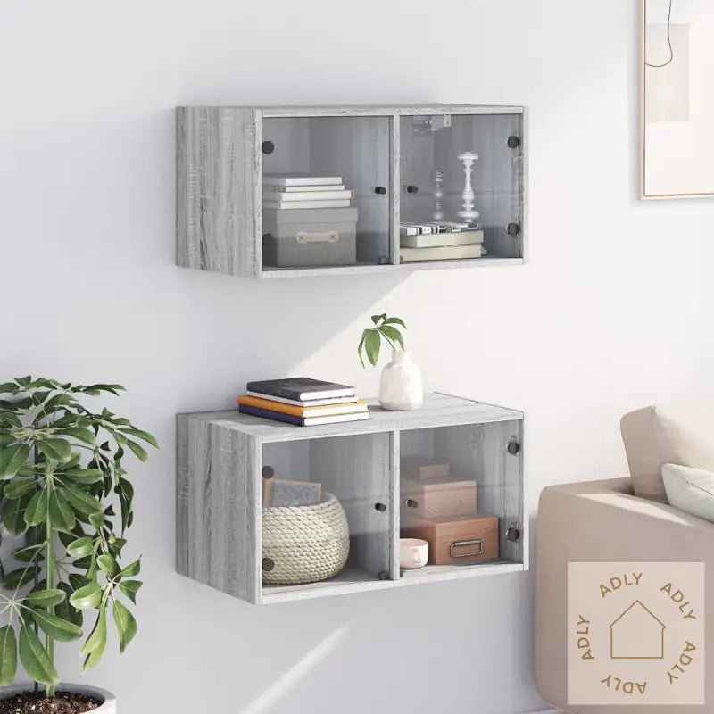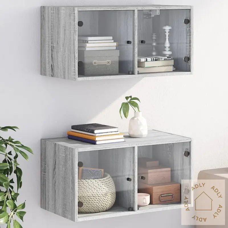 Skruer og plugger til veggmontering følger ikke med, så pass på å bruke monteringstilbehør tilpasset din veggtype. Rådfør deg gjerne med fagfolk ved usikkerhet, og følg monteringsanvisningen nøye for best resultat og trygghet.Farge: grå sonomaMateriale: konstruert tre, glassMål: 68,5 x 37 x 35 cm (B x D x H)Maksimal lastekapasitet: 80 kgLastekapasitet per rom: 40 kgMontering kreves: jaLeveransen inneholder:2 x veggkabinetter