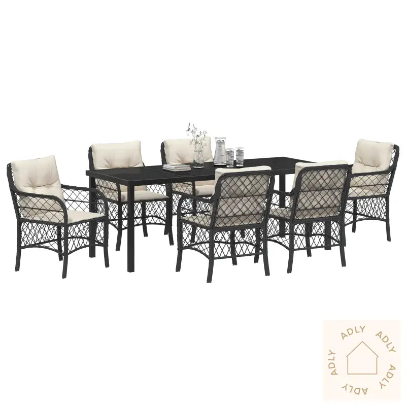 Denne hage spisegruppen kombinerer stilig design med moderne poly rattan og tilfører et elegant, eksklusivt preg til ethvert uteområde. Uansett om du har stor terrasse, liten balkong eller takterrasse, vil denne gruppen gi sonen din et løft. De komfortable stolene med myke puter inviterer til lange og hyggelige måltider eller avslappende stunder med familie og venner, enten det er til frokost i morgensolen eller sosiale kvelder.