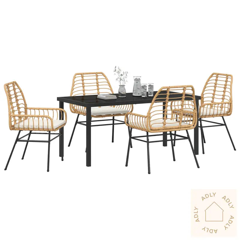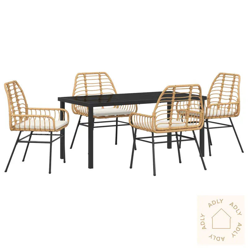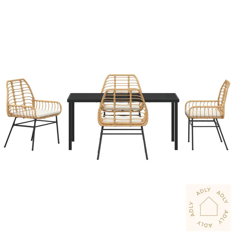 Komfortabel Sitteplass: De tykke, myke putene gjør at du sitter ekstra godt – perfekt når du skal nyte en kopp kaffe på morgenen eller lange sommerkvelder med familie og venner.Stabil Konstruksjon: Stolene hviler på en kraftig pulverlakkert stålramme, noe som gir solid stabilitet og lang levetid. Perfekt til daglig bruk, år etter år.Stilig Utseende: Med sitt moderne design og brune poly rotang-overflate glir settet rett inn på både store terrasser og små balkonger, og gir utemiljøet ditt en eksklusiv touch.Praktisk Vedlikehold: Putene leveres med avtakbare trekk som enkelt kan tas av og vaskes ved behov, mens resten av møblene kan tørkes over – alt laget for å spare deg for tid og arbeid.Lett & Fleksibelt: Møblene er overraskende lette – det gjør det lekende lett å flytte dem rundt alt etter hvordan du vil innrede uteplassen, enten du samler mange eller vil ha en rolig krok for deg selv.Antall varer: 5Farge: BrunForm: RektangulærMateriale: Syntetisk Poly RotangOverflate: PulverlakkertInnendørs/Ute: Innendørs / UtendørsTrekk inkludert: NeiRom: Hage og terrasseBatterier inkludert: NeiHodegjerde inkludert: NeiKapasitet: 110 kg per stolMaksimalt antall personer: 4Maksimal vekt: 110 kgHøyde på overflate: 3 cmHøyde på bein: 44 cmSittedybde: 48 cmSittekapasitet: 1Gynge: NeiStige: NeiMerke: Levering inneholder: 4 x Stol, 1 x BordMontering kreves: JaAnbefalt antall personer for montering: 2Oppgrader uteplassen din med denne slitesterke serien i poly rotang – et smart valg for deg som vil ha praktiske, stilige hagemøbler og møbler til hjemmet som varer lenge. Enten det gjelder avslapning alene eller hyggelige stunder sammen, har disse møblene egenskapene som gir ekstra komfort og enkel bruk. Vil du utfylle stilen ytterligere? Sjekk også vårt utvalg av bokhyller og stående hyller til både inne og ute!