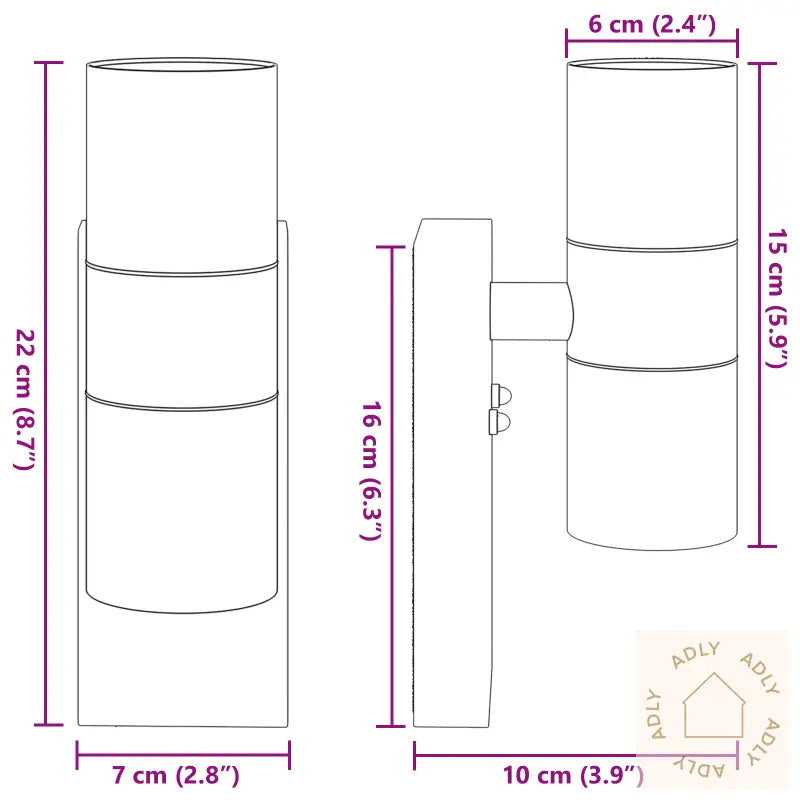 Dette settet med utendørs vegglamper kombinerer et moderne, elegant design med praktisk funksjonalitet. Vegglampene er et flott tillegg til ethvert hjem, og passer perfekt sammen med både hagemøbler og andre møbler til hjemmet. De er laget av solid metall med en matt svart finish, noe som gir både et tidløst uttrykk og god holdbarhet. Lampene gir et behagelig lys som ikke bare lyser opp omgivelsene dine, men også løfter stilen på rommet ditt – enten det er i stua, gangen eller ved inngangsdøren.