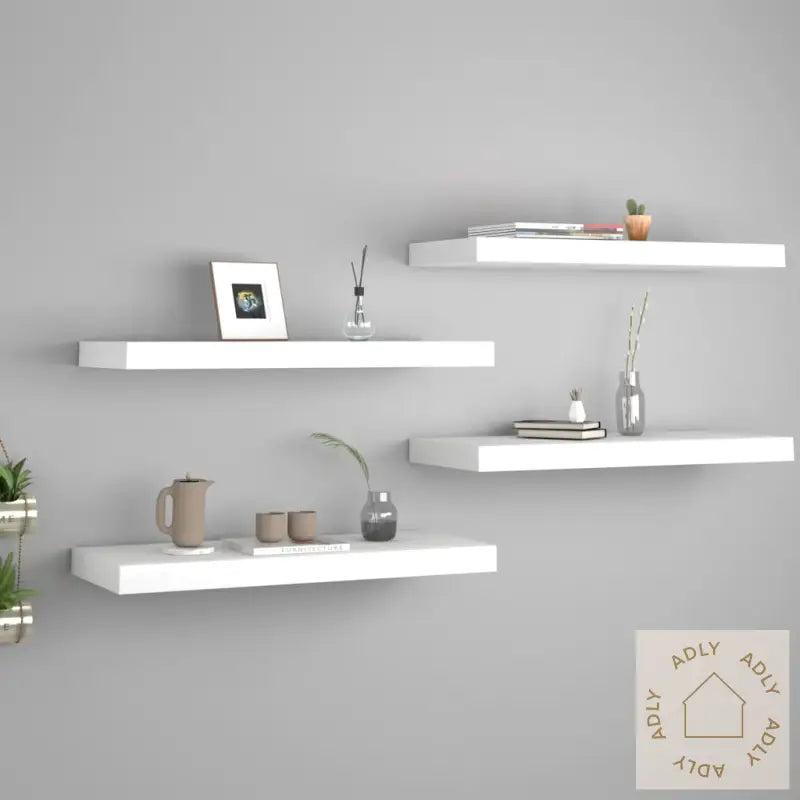 Dette settet med fire stilige vegghyller er laget for å bli et iøynefallende midtpunkt i hjemmet ditt. Takket være et smart, usynlig monteringssystem blir hyllene enkle å montere på veggen uten synlige fester, og gir et stilig, svevende uttrykk. Her får du det perfekte stedet til å vise fram alt fra pokaler, bøker, samleobjekter, små ornamenter eller planter. Med disse vegghyllene får du ikke bare mer oppbevaringsplass – du lager samtidig en interiørdetalj som gir rommet et løft.