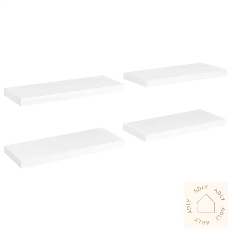 Farge: hvitMaterialer: bikake-MDF, metallMål: 60 x 23,5 x 3,8 cm (L x B x H)Maksimal lastekapasitet (hver): 7 kgUsynlig monteringssystemMontering kreves: jaLeveransen inneholder:4 x vegghyller