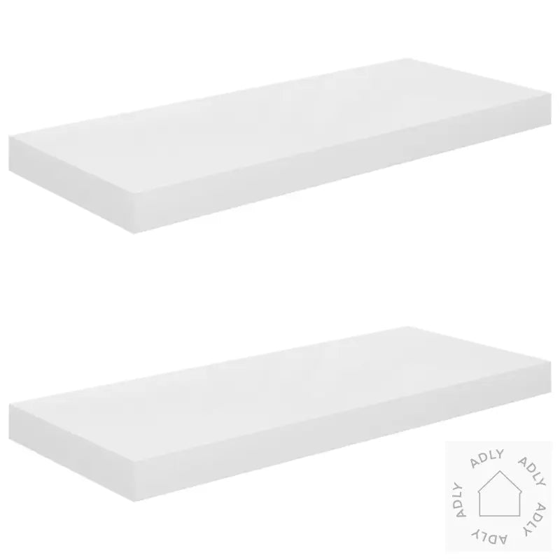 Farge: høyglans hvitMaterialer: bikake MDF, metallMål: 60 x 23,5 x 3,8 cm (L x B x H)Maksimal lastekapasitet (hver): 7 kgUsynlig monteringssystemMontering kreves: jaLeveransen inneholder:2 x vegghyller
