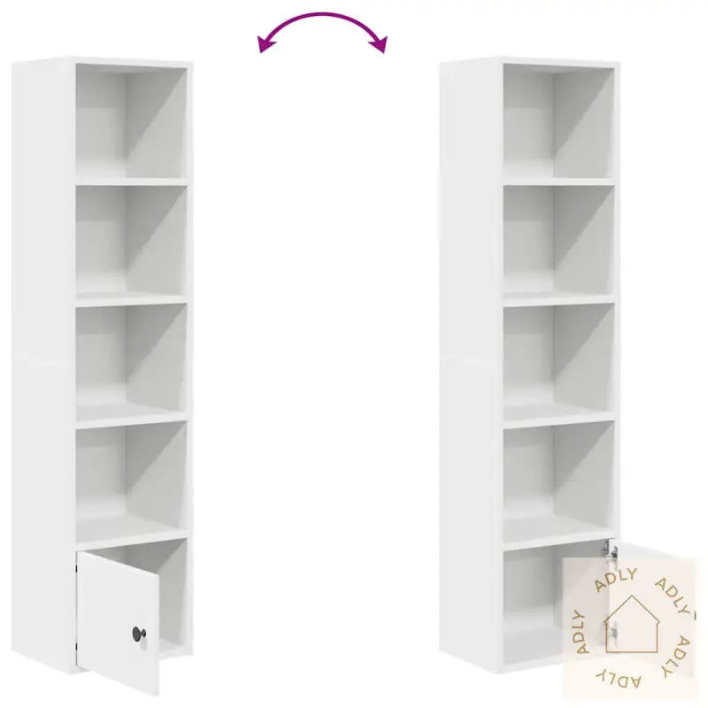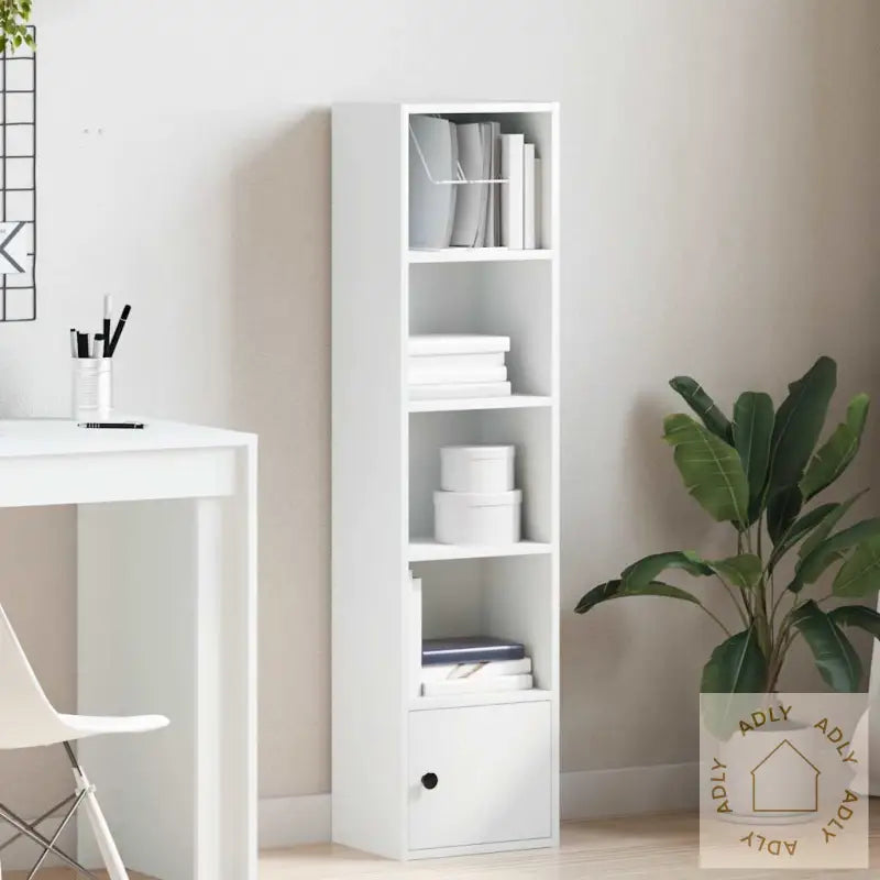 Stabilt og slitesterkt materiale: Bokhyllen er laget av konstruert tre, som har solide egenskaper og en glatt overflate. Materialet er motstandsdyktig mot fukt, vridning og sprekker, noe som gir deg et holdbart møbel du kan stole på over tid.Rikelig med lagringsplass: Hyllen har flere åpne hyller samt et praktisk skap med dør, slik at du får rikelig plass til å organisere alt fra bøker og blader til viktige dokumenter. Perfekt for deg som trenger system og oversikt hjemme, enten på kontoret eller i stua.Fleksibel dørinstallasjon: Du kan montere døren på høyre eller venstre side – tilpasses enkelt etter hva som passer best hos deg og hvordan du ønsker det sammen med andre møbler.Ulike bruksområder: Bokhyllen er ikke bare for bøker! Bruk den også til å vise frem pyntegjenstander, bilder, små planter, premier eller alt annet du vil ha synlig på en dekorativ måte – gjør hyllen personlig og bruk den slik det passer dine behov.Enkel å vedlikeholde: Den slitesterke og glatte overflaten gjør at bokhyllen er lett å rengjøre – bare tørk over med en fuktig klut, så ser den alltid ny og fin ut uten mye jobb.Bokhyllen er et trygt valg når du ser etter nye møbler eller bokhyller og stående hyller til hjemmet. Den gir både funksjonalitet og et moderne uttrykk til innredningen din.