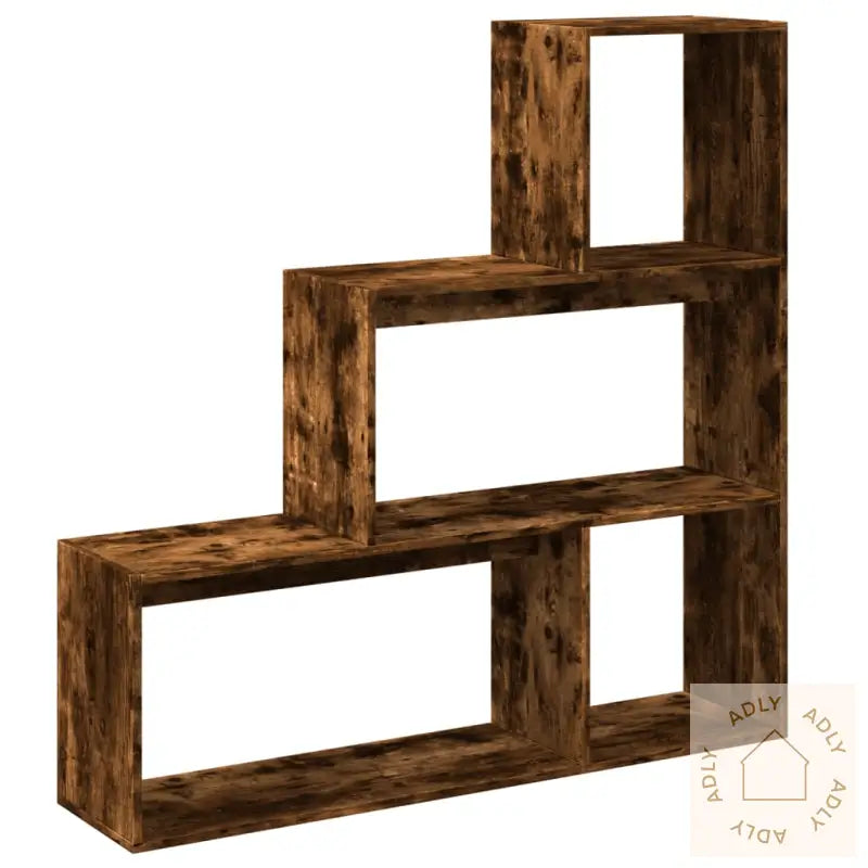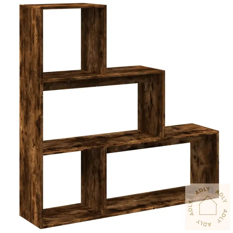 Skruer og plugger til innvendig vegg følger ikke med i pakken. Velg fester som passer for akkurat dine vegger. Er du usikker, bør du rådføre deg med fagfolk. Husk også å lese og følge alle instrukser nøye under montering.Farge: røkt eik – gir et naturlig, varmt uttrykk.Materiale: konstruert tre – slitesterk og pålitelig kvalitet.Mål: 123 x 29 x 123 cm (L x B x H)Total lastekapasitet: 50 kgVekt per etasje: 10 kgTrappelignende design bidrar til det stilrene uttrykket.Kan brukes like fint som romdeler som til tradisjonell oppbevaring.Montering kreves: Ja, men instruksjonene er enkle å følge.Legal Documents: