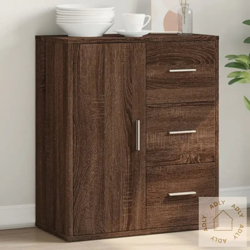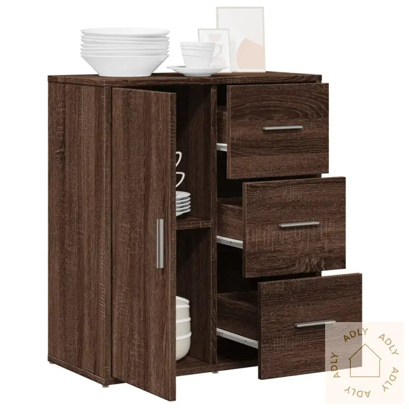 Denne solide skjenken er designet for å være et blikkfang i rommet og kombinerer moderne stil med funksjonell praktiskhet. Passer perfekt om du vil fornye stua eller ser etter møbler til hjemmet som gir både god oppbevaring og stilig uttrykk i brun eik.