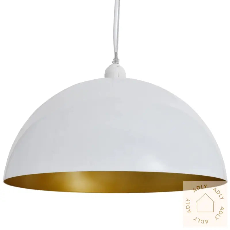 Denne halvkuleformede taklampen er et supert valg for deg som ønsker moderne og stilige møbler til hjemmet, enten det er til privat stue, soverom, spisestue eller til kommersielle steder som kafeer og restauranter. Den har et enkelt, elegant design med en tidløs kombinasjon av hvitt og gull, noe som gjør lampen allsidig og lett å matche med både nye og eksisterende hagemøbler og interiør. Taklampen gir ikke bare belysning, men løfter også rommets estetiske uttrykk og gir hjemmet eller lokalet et ekstra preg av luksus og varme.