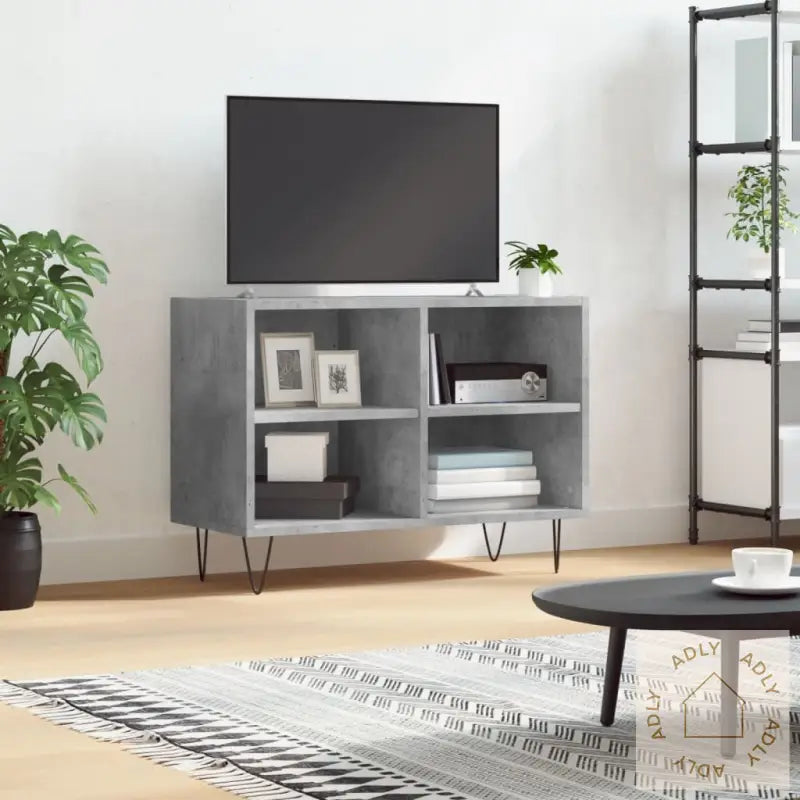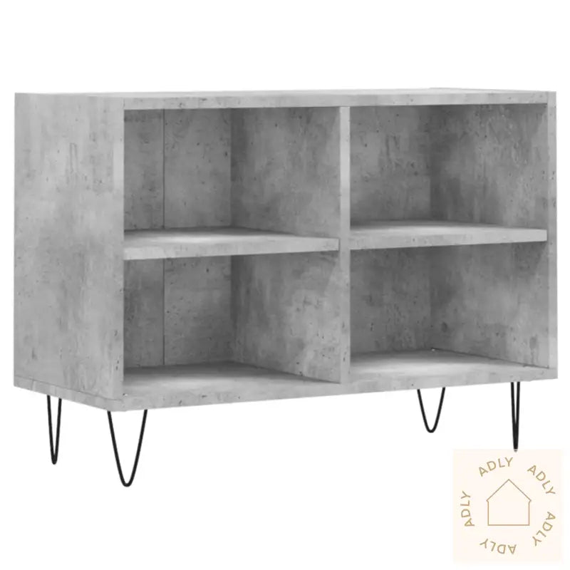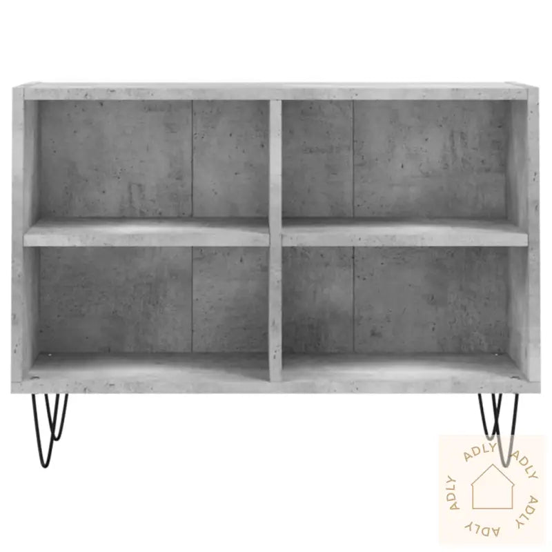 Solid materiale: Den er laget av konstruert treverk med høy kvalitet, noe som gir en jevn og elegant overflate. Dette materialet gir ikke bare styrke og stabilitet, men gjør også TV-benken fuktbestandig og lett å rengjøre med en enkel fuktig klut – perfekt både blant øvrige møbler til hjemmet og som en del av bokhyller og stående hyller.Rikelig med lagringsplass: Fire åpne rom gir deg masse plass til å organisere magasiner, bøker, DVD-er og alt du trenger av multimedieutstyr. Alt forblir ryddig og enkelt tilgjengelig, slik at du får oversikt over det du har liggende.Stabil bordplate: Toppflaten på benken er robust og stabil – ideell til å vise frem dekorative gjenstander, plassere kopper eller ha favorittbøkene dine liggende.Jernben: De solide jernbena sørger for ekstra stabilitet og lang levetid, uansett hvordan du velger å bruke TV-benken.Benken kombinerer det moderne betonggrå designet med slitesterke materialer, noe som gjør den til en allsidig del av møbleringen, enten du innreder nytt eller ønsker å oppdatere hjemmet.