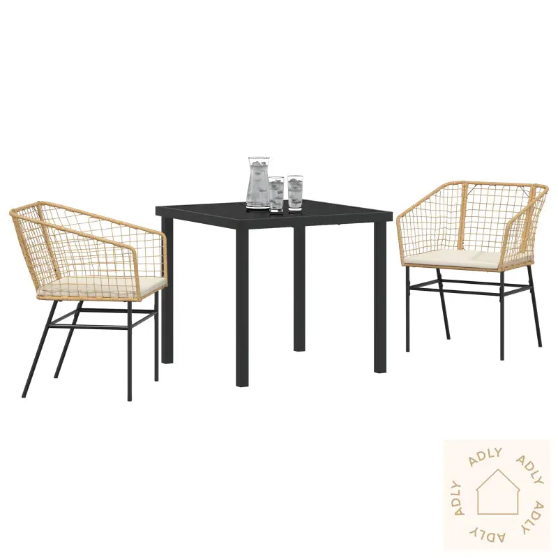 Antall elementer: 3Farge: BrunForm: AnnenMateriale: Syntetisk polyrottingFinish: PulverlakkertInnendørs/Ute: Kun utendørsDeksel inkludert: JaRom: Hagen og terrasseBatterier inkludert: NeiHodegavl inkludert: NeiKapasitet: N/AMaks antall personer: 2Maks vekt: 110 kgBenhøyde: 45 cmSetedybde: 48 cmSitteplasser: 2Gynger: NeiStige: NeiMerke: Levering inneholder: 2 x Hagemøbel, 1 x BordMontering kreves: JaAnbefalt antall personer for montering: 2