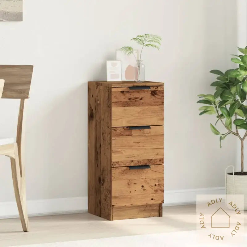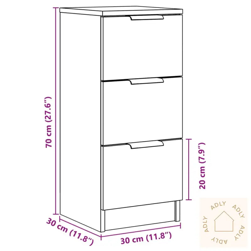 Stabilt materiale: Det konstruerte treverket er av høy kvalitet, med en jevn overflate som gir både styrke og soliditet. Materialet er fuktbestandig, noe som øker holdbarheten og gjør at skjenken kan tåle daglig bruk i mange år fremover.Rikelig med lagringsplass: Sideskapet har tre separate skuffer, så du får god plass til å oppbevare småting, holde blader, bøker, DVD-er og multimediautstyr ryddig og organisert. Med denne smarte oppbevaringsløsningen vil det alltid være enkelt å holde orden.Multifunksjonelt skap: Skjenken fungerer utmerket som oppbevaringsskap til bøker, samlinger og annet tilbehør. Den kan også brukes som sidebord i stua eller som nattbord på soverommet – kun fantasien setter grenser for hvordan du kan bruke dette allsidige møbelet.Robust topp: Den solide toppen gir deg muligheten til å style innredningen, for eksempel med dekorative gjenstander, familiebilder eller grønne planter som gir hjemmet ekstra hygge.Advarsel: