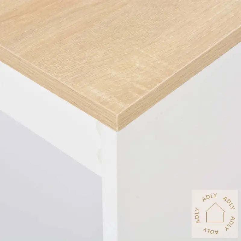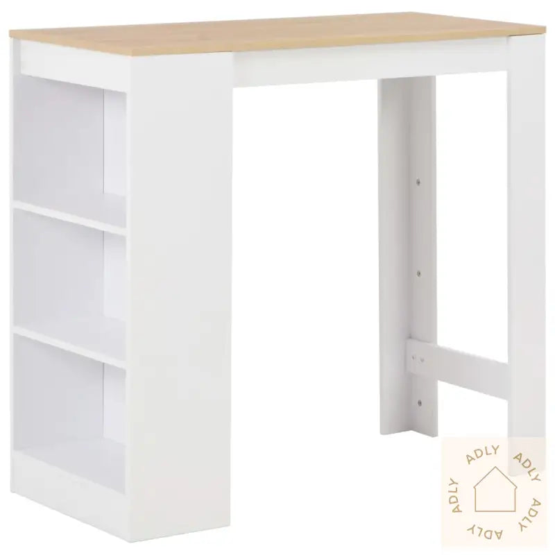 Farge: Hvit med naturlig bordplateMateriale: Konstruert treMål totalt: 110 x 50 x 103 cm (L x B x H)Mål hylle: 50 x 25 x 101,5 cm (L x B x H)Tre hyller til oppbevaring