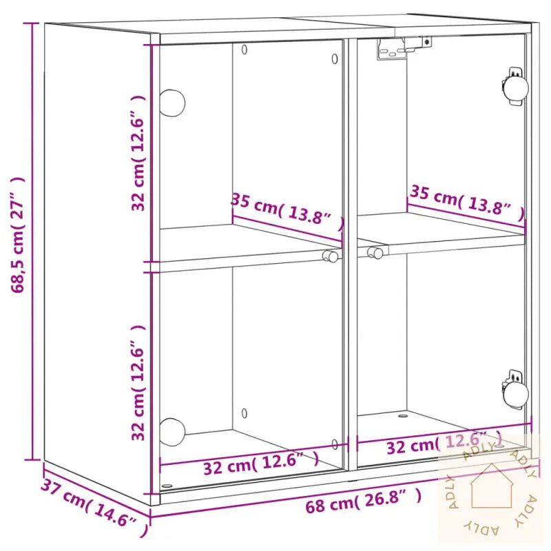 - Praktiske glassdører: Skapet har glassdører som lar deg skjule småting og holde det ryddig, samtidig som du kan vise frem dine fineste dekorasjoner eller hagemøbler i miniatyr. Glassdørene gir en elegant touch, og du får oversikt over innholdet uten å måtte åpne skapet.