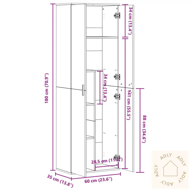 Solid og holdbart materiale: Highboardet er laget av konstruert treverk av eksepsjonell kvalitet. Den glatte overflaten gjør det både sterkt og stabilt, i tillegg til at det tåler fuktighet. Det betyr at dette skapet er bygget for å vare – og holder seg fint år etter år.Rikelig oppbevaringsplass: Med gode oppbevaringsmuligheter holder du lett tingene dine organiserte og lett tilgjengelig. Perfekt for alt fra servise, bøker og dokumenter til pyntegjenstander – dette highboardet er like anvendelig som bokhyller og stående hyller.Enkel rengjøring: Du slipper stress med vedlikehold – en fuktig klut er alt du trenger for å holde overflatene rene og pene.Praktisk design: Skjult lagring gir et ryddig uttrykk, og dørene sørger for at tingene dine alltid er støvfrie.Advarsel: