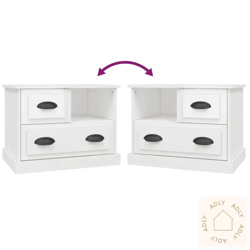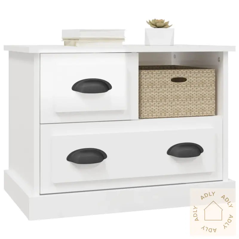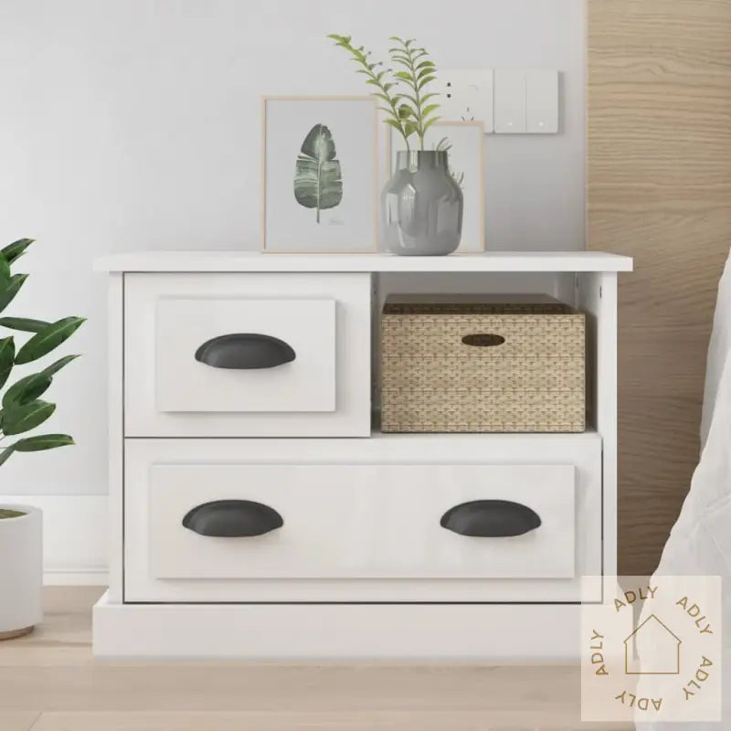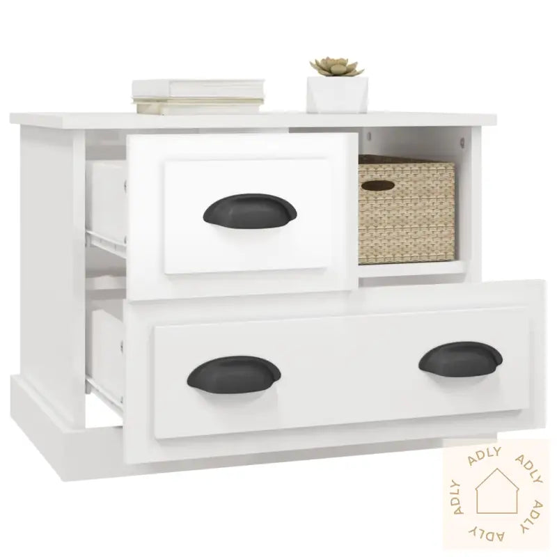 Slitesterkt materiale: Dette nattbordet er laget av konstruert tre, kjent for sin eksepsjonelle kvalitet. Materialet gir en glatt overflate, samtidig som det har en robust struktur med høy stabilitet. Takket være motstand mot fuktighet holder overflaten seg fin lenge, noe som gjør det enkelt å vedlikeholde sammen med andre møbler.Smart lagringsplass: Med ett åpent rom og to dype skuffer får du lett tilgang til alt fra bøker til telefoner eller andre småting du ønsker å oppbevare i nærheten av sengen. Perfekt for deg som vil holde ting ryddig og organisert uten at det går på bekostning av stilen på møblene dine.Solid bordplate: Den stabile toppflaten gir nok plass til dekorative detaljer, som lamper, bilder eller små potteplanter. På denne måten kan du enkelt tilpasse uttrykket etter din stil og gjøre nattbordet til et personlig møbel i hjemmet.Godt å vite: