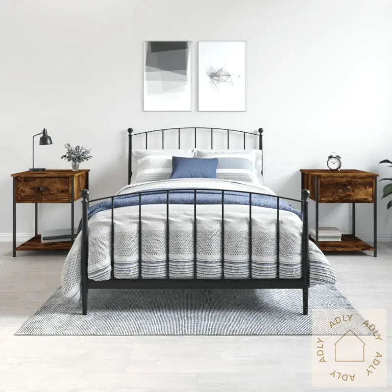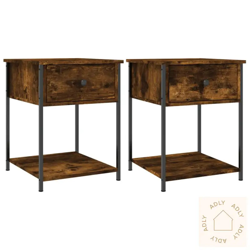 For å forebygge at nattbordet velter anbefales det å bruke den medfølgende festeanordningen, slik at møblene står trygt og sikkert i hjemmet ditt.Farge: Røkt eik – en raffinert og varm tone som passer de fleste interiørstiler.Materialer: Konstruert tre og jern – gir en flott balanse mellom stil og varighet.Mål: 44 x 45 x 58 cm (L x B x H) gir deg rikelig med plass uten at møblet tar for mye rom.Montering kreves: Ja, men enkel montering tilrettelagt.Leveransen inneholder:2 x nattbord – ideelt hvis du ønsker et balansert uttrykk på soverommet.Legal Documents: