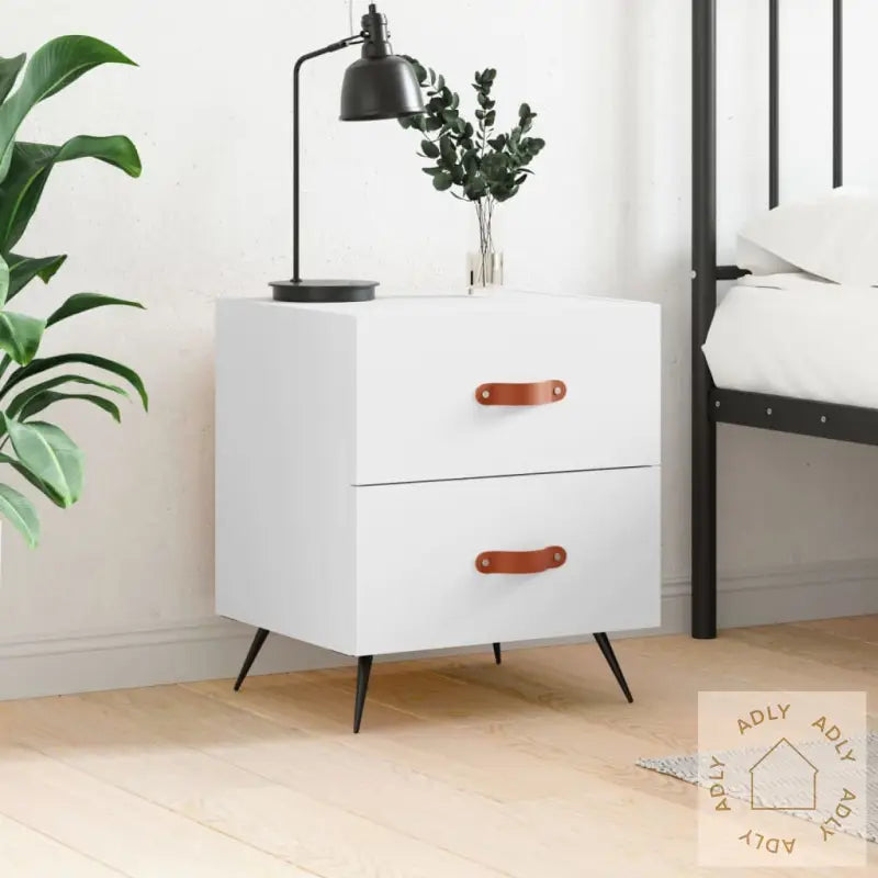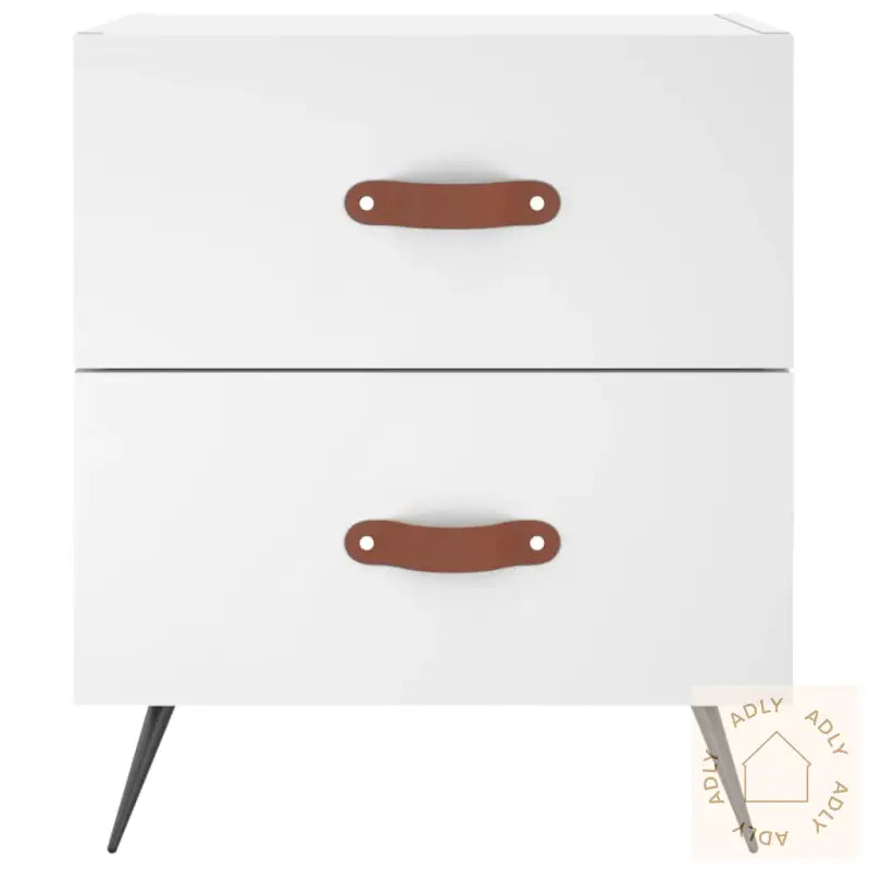 Slitesterkt materiale: Det konstruerte treverket har eksepsjonell kvalitet med en glatt, elegant overflate, samtidig som det gir styrke, stabilitet og er motstandsdyktig mot fuktighet. Perfekt valg for deg som vil ha møbler til hjemmet som varer lenge.Romslig oppbevaring: Dette nattbordet har skuffer med god plass, slik at du kan holde alt fra bøker, små elektronikk eller nødvendigheter på soverommet organisert og lett tilgjengelig. En praktisk løsning for deg som liker orden blant både bokhyller og stående hyller.Visningsfunksjon: Den solide toppen gir rikelig plass til å vise frem bilder, dekorasjoner eller blomster, og lar deg sette et personlig preg på soverommet. Gjør natten litt hyggeligere med favorittgjenstander i nærheten.Metallføtter: De solide metallføttene gir et moderne løft til designet og sørger for god stabilitet, uansett gulvtype. Dette gir møbelet ekstra levetid og understreker den moderne stilen.Farge: hvitMaterialer: konstruert tre, jern, PU-kunstskinnMål: 40 x 35 x 47,5 cm (B x D x H)Montering kreves: ja
