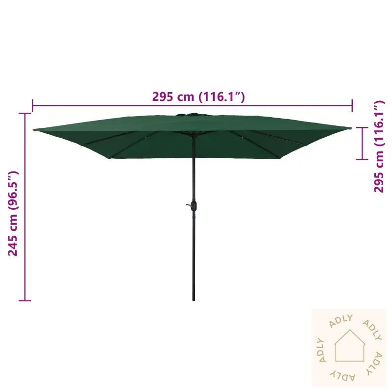 Den store grønne uteplassparasollen er et stilfullt og funksjonelt tillegg til uteområdet, og passer perfekt sammen med både hagemøbler og andre møbler til hjemmet. Parasollen gir rikelig med skygge og skaper et lunt og koselig sted der du kan slappe av på solrike dager eller samle venner og familie til middag utendørs – ideelt for både balkongen, terrassen eller hagen. Den flotte grønne fargen og den matte finishen gjør denne parasollen til et dekorativt blikkfang som gir uteplassen ditt en oppgradert stil og merverdi, uansett om den kombineres med klassiske eller moderne utemøbler.