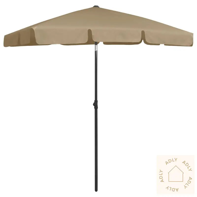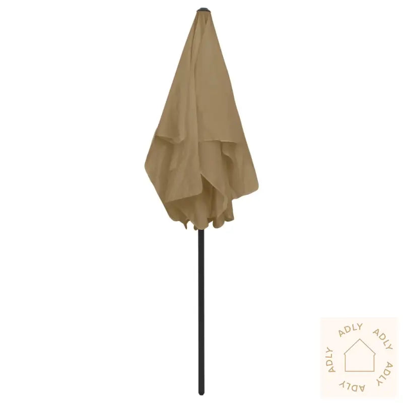 Farge: gråbrunMateriale: polyesterDiameter stang: 28/32 mmTotal høyde: 232 cmOverflate parasoll: 180 x 120 cm (L x B)Vær- og UV-bestandigVippbarMontering kreves: ja