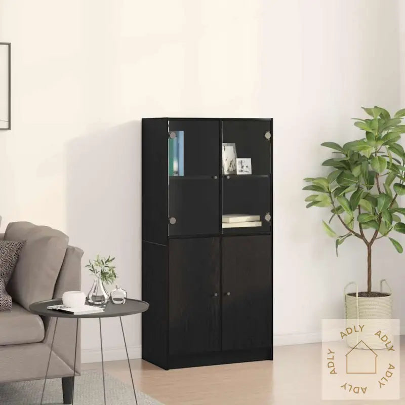 Her er det stilige Svart Eik Høyskapet – et smart tillegg til ethvert rom som kombinerer moderne design og funksjonalitet. Dette praktiske møbelet gir deg ikke bare god oppbevaringsplass, men fungerer også som et iøynefallende møbel som gir stua eller spisestuen et løft.