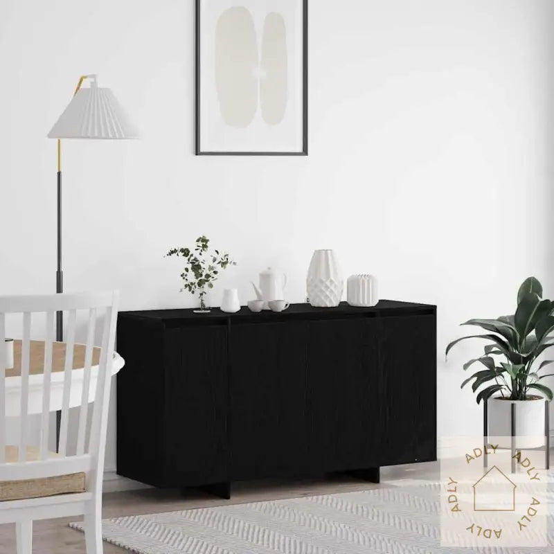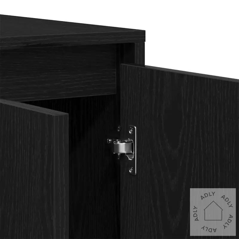Dette moderne svart eik serveringsskapet er en smart og stilren lagringsløsning for spisestuer. Den elegante utformingen og den moderne stilen tilfører et sofistikert preg til rommet samtidig som det holder spiseutstyret ditt organisert og lett tilgjengelig. Her får du det lille ekstra som gir rommet karakter, uten at du må gi slipp på funksjonalitet.