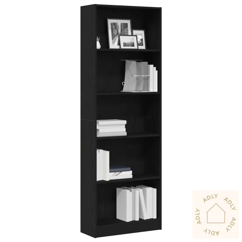 Denne moderne bokhyllen i svart eik kombinerer stil med funksjonalitet, så den passer perfekt inn blant andre møbler til hjemmet. Den er laget av førsteklasses konstruert tre, noe som gir solid holdbarhet. Overflaten er jevn og moderne, og gjør bokhyllen til et flott valg for både stue og kontor.